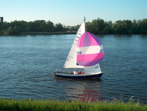 Goede geremde wegtrailer (kanteltrailer met eigen kenteken). Inclusief toergrootzeil met rolfok en inclusief semi wedstrijdgrootzeil, genua en spinaker. Met neerklapbare buiskap en inclusief een goedlopende 4 pk 4-takt Yamaha buitenboordmotor uit 2017 met bescherming om de schroef. Huik over het grootzeil en afdekzeil over de kuip horen er ook bij.